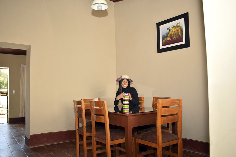 Contamos con bungalows completamente equipados con cocina, sala, comedor, habitaciones, baños con agua caliente, hermosas áreas verdes con una pileta y una extraordinaria vista hacia los nevados.