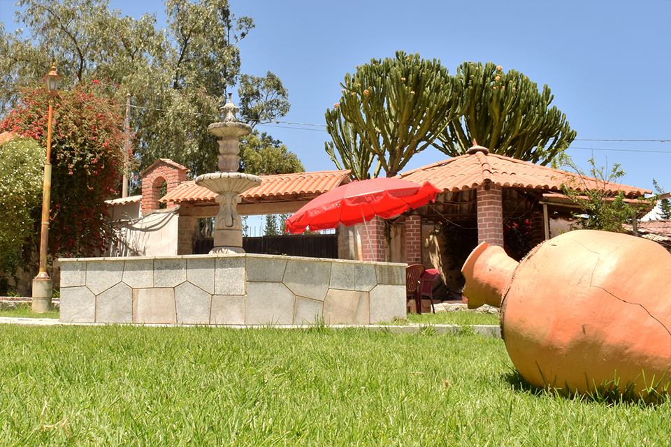 Zonas compartidas como una pileta de piedra entre áreas verdes bien conservadas y una capilla privada para nuestros huéspedes.